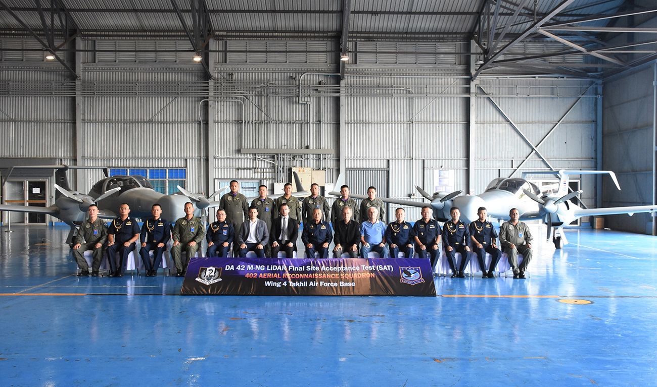 The RTAF has placed orders for more than thirty (30) aircraft for multiple applications since 2008. Their newest three DA42 MPP, which will be added to the surveillance and reconnaissance fleet at wing 402, are equipped with high-end sensor technology to support the country in fast collecting environmental data used for disaster relief and monitoring, generation of flood models, surveillance of terrain as well as change-detection and other applications. The aircraft are in a changeable configuration and ready to be used also with existing surveillance and reconnaissance mission systems. The latest three DA42 MPP were delivered with an extensive package of ground processing stations, spare parts, trainings and a purchase and development program.